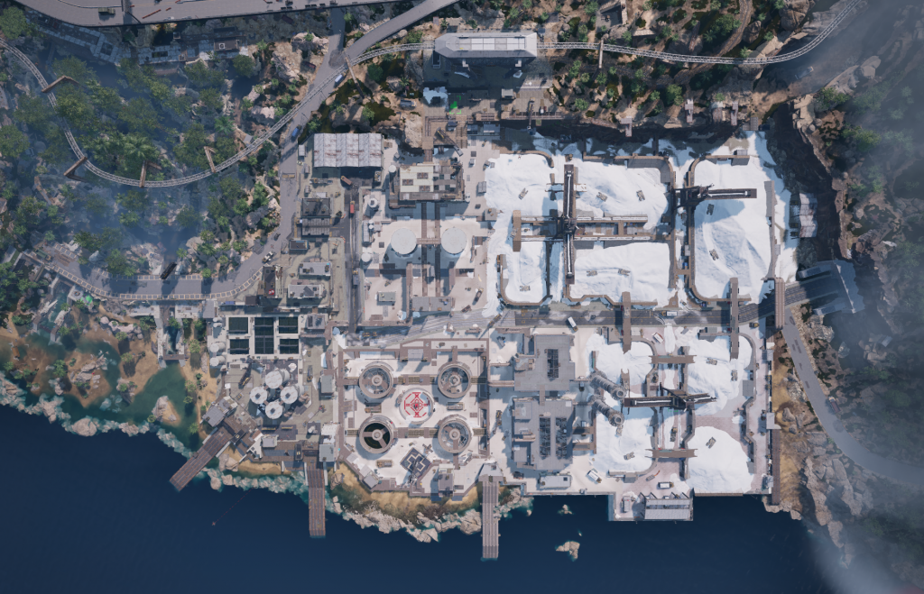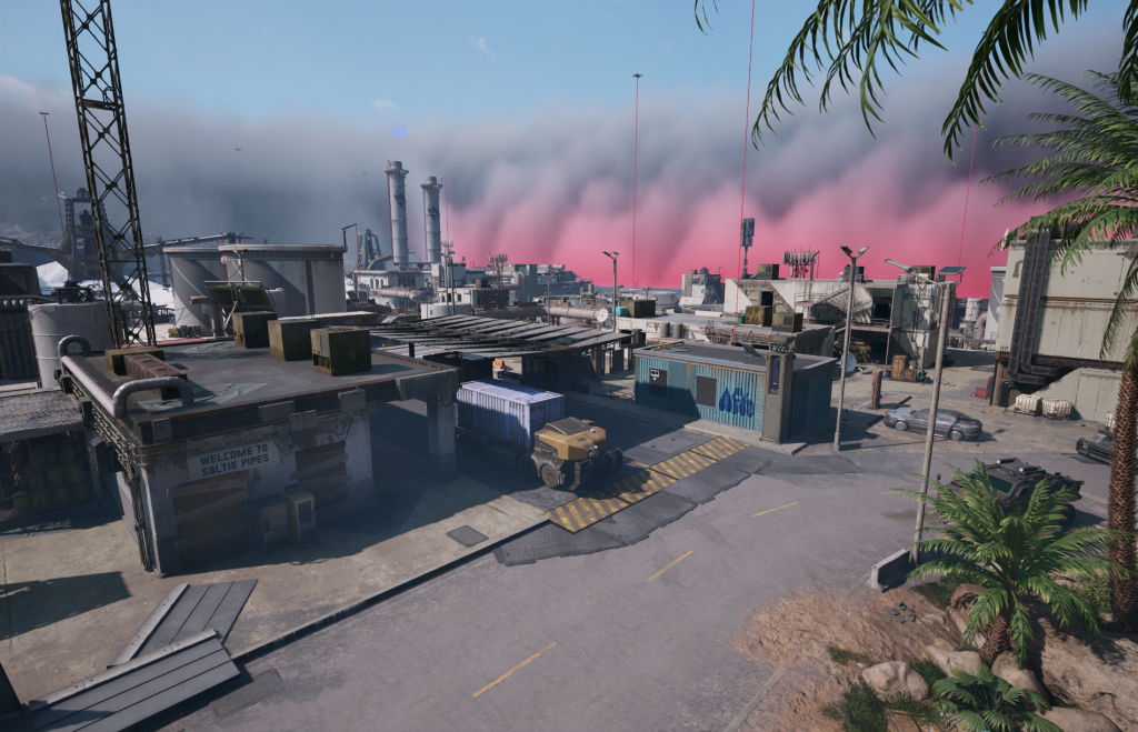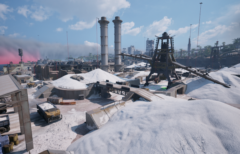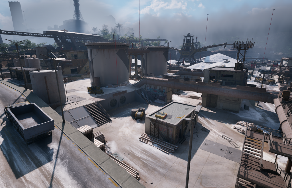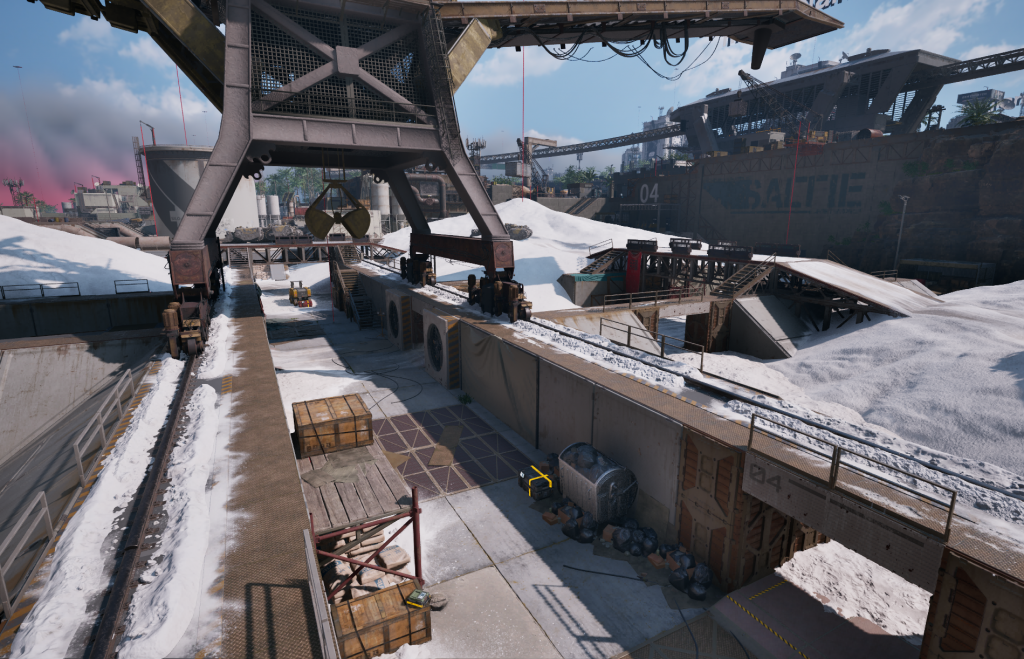 - Loosely connected to the previous point: less cover doesn’t mean ‘no cover at all’. This gave us some interesting challenges during the design of the giant salt piles that this location was going to have. Due to the nature of salt any type of foliage was out of the question. Reference images didn’t show many objects on such piles, in general. We arrived at a mix of trenches between the piles, big conveyor belt towers and vehicles scattered across the piles to fix this problem.